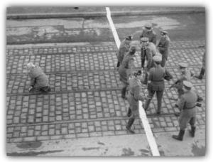 Photo credit: ‘Early 1960s. Before the construction of the Berlin Wall West German soldiers stare down the East after a young woman makes it across the line to the West.’ – Drive Thru History.