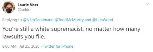 With another person stating out right, ‘You’re still a white supremacist, no matter how many lawsuits you file.’