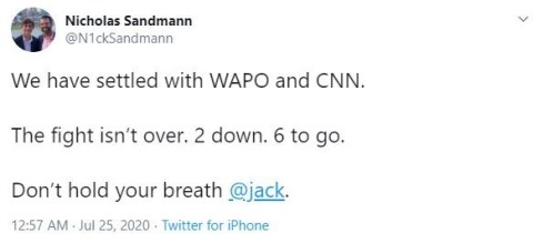 If someone were to collate all the slander/libel thrown Sandmann’s way on Twitter. Given his current score, Sandmann would be a trillionaire in no time. This might explain his cryptic ‘Don’t hold your breath, Jack’, tagline to Twitter CEO, Jack Dorsey.