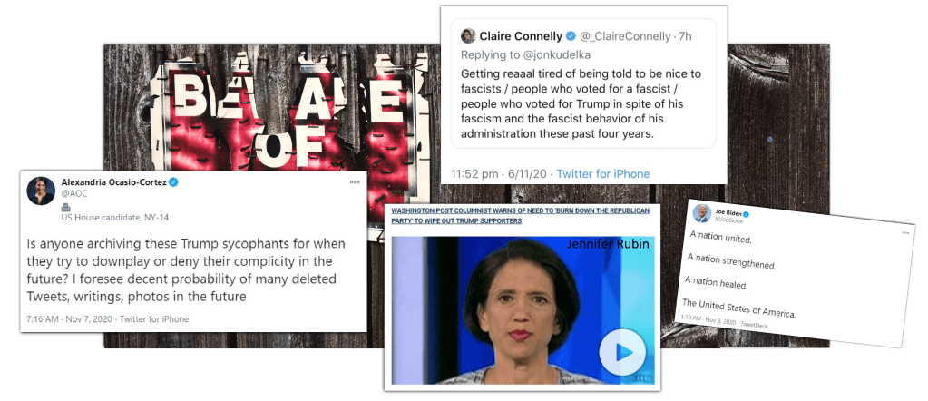 With Biden being contradicted by members of the Democrat party, with their threats of “burning the Republican party to the ground,” and rounding up 70.6 million Trump voters, creating blacklists via the “Trump Accountability Project” and calling for them to be punished for all sorts of fake crimes, it’s not going to be clear skies, and blue horizons for the potential President.