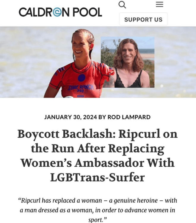 Think about the lunacy of it all: Ripcurl has replaced a woman – a genuine heroine – with a man dressed as a woman, in order to advance women in sport.
