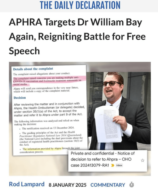 APHRA Targets Dr William Bay (Billy Bay) Again, Reigniting Battle for Free Speech