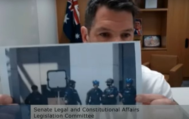 Joining Roberts, South Australian LNP Senator Alex Antic also questioned Kershaw. Antic tabled a picture showing the police standing near the device. He then asked the AFP commissioner to confirm whether or not the device was present on the day.